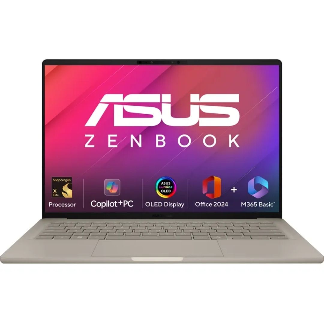 The ASUS Zenbook A14 OLED (UX3407RA-QD054WS) is an ultra-lightweight AI-powered laptop designed for modern professionals. Weighing under 1 kg, it features the Snapdragon® X Elite X1E 78 100 processor with a 45 TOPS NPU, delivering powerful AI performance and enhanced Copilot+ features. Its 14-inch OLED WUXGA display provides vivid visuals with HDR True Black 600 certification and 100% DCI-P3 color gamut for a stunning experience.