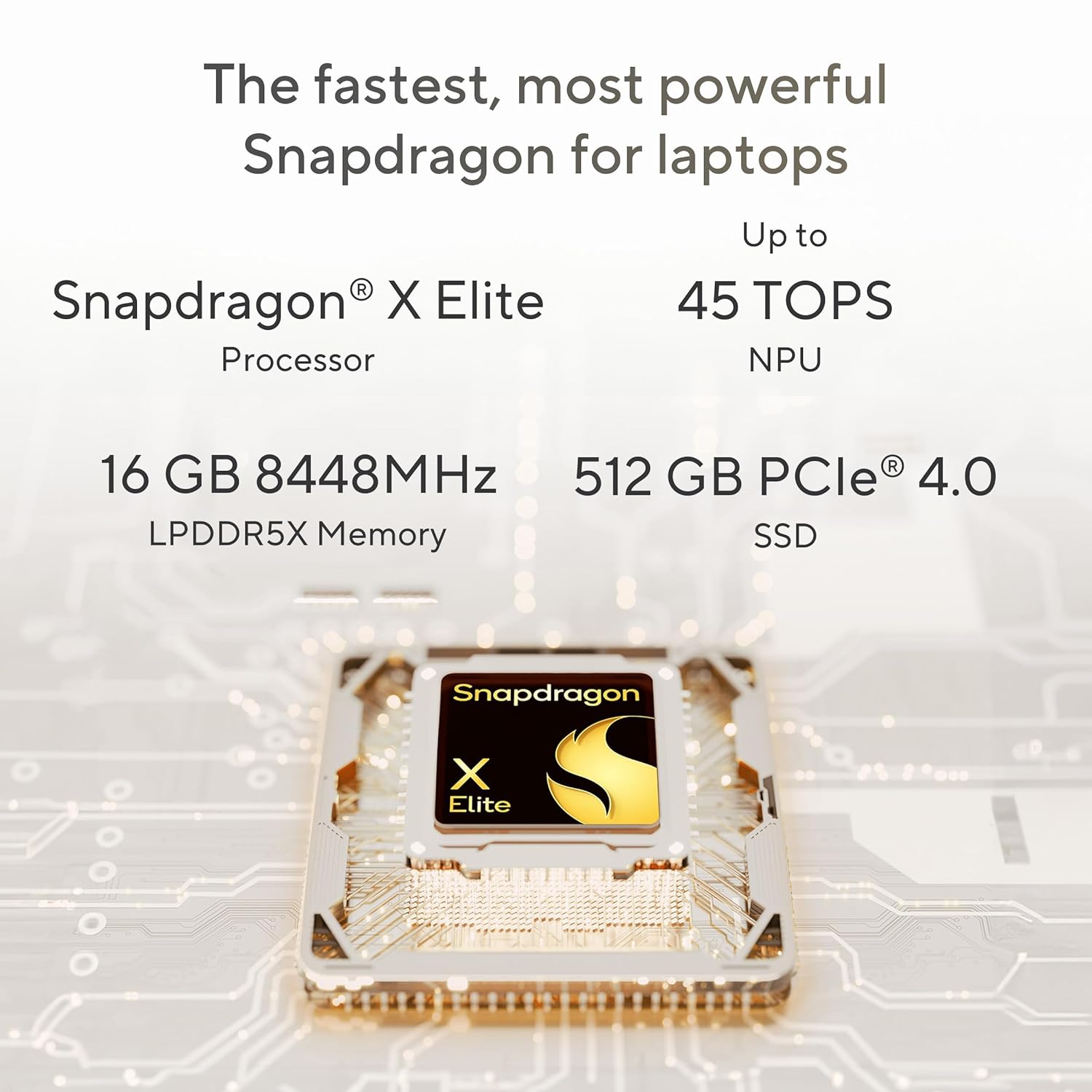 Packed with 16GB LPDDR5X RAM, 512GB PCIe 4.0 SSD, and Qualcomm Adreno GPU, it ensures smooth performance for work, study, and entertainment. The 70Wh battery combined with efficient dual-fan cooling keeps it cool and productive all day.