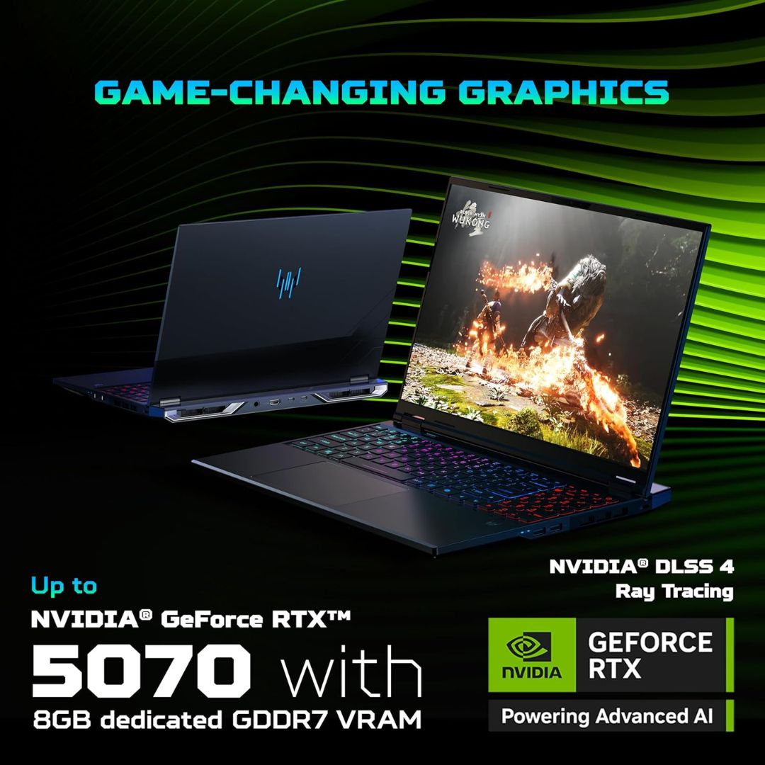 Paired with the NVIDIA GeForce RTX 5070 (8GB GDDR7), this gaming laptop offers cutting-edge graphics with ray tracing, DLSS 3.5, and superior rendering capabilities. The 16-inch WQXGA IPS display with a 240Hz refresh rate ensures competitive edge with smooth, lag-free gameplay.