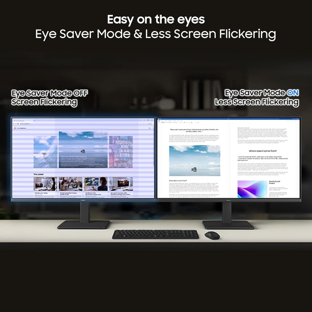 The super slim, borderless design enhances immersion and complements modern workspaces. Game Mode optimizes picture settings for gaming, while Eye Saver Mode helps reduce eye strain during extended use. The monitor is also wall mountable, offering flexible placement options. Finished in black, it is a stylish and practical display solution.