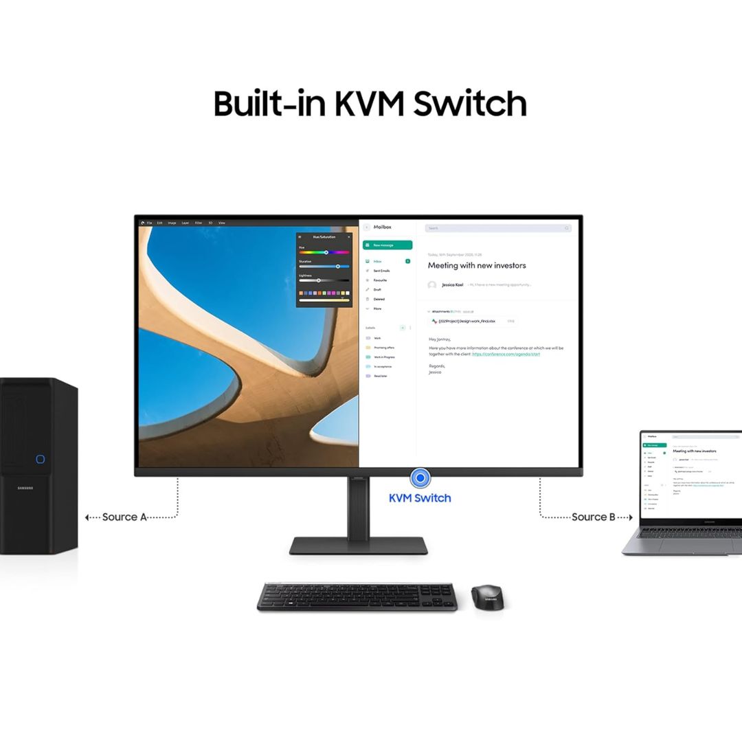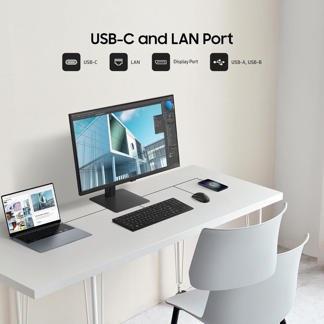 Designed with user comfort in mind, the Easy Setup Stand allows quick installation without tools, while the ergonomic stand supports height, tilt, and pivot adjustments for optimal viewing posture. Finished in a sleek black design, the Samsung ViewFinity S8 blends performance, efficiency, and elegance for modern workspaces.