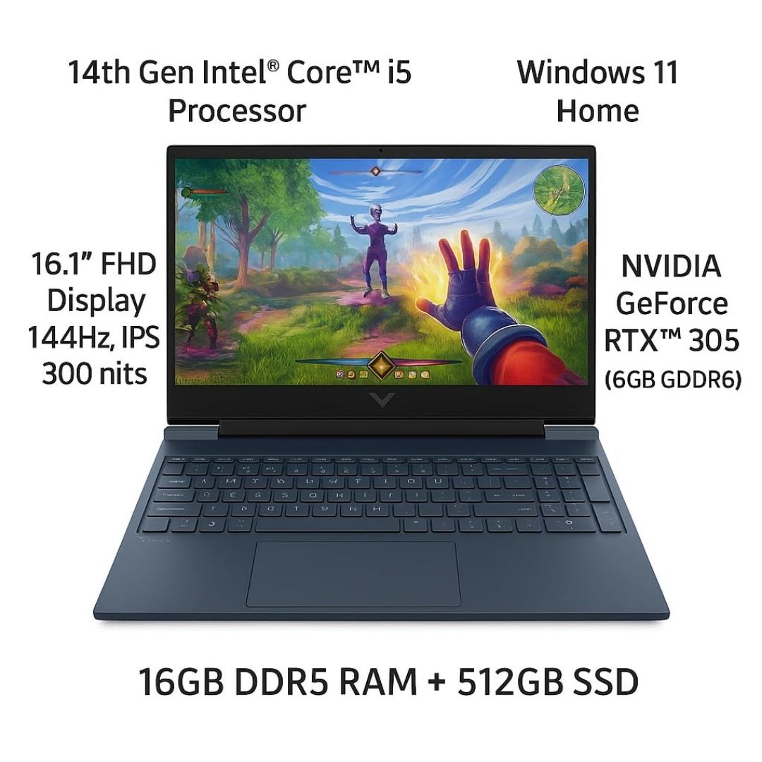 The HP Victus 16-r1703TX is a powerful and refined gaming laptop built for gamers, creators, and performance-focused users. With the latest 14th Gen Intel Core i5-14450HX processor, it delivers impressive processing power ideal for gaming, content creation, and heavy multitasking. The NVIDIA GeForce RTX 3050 6GB GPU ensures stunning graphics, smooth gameplay, and the ability to enjoy modern titles with ray-trac
