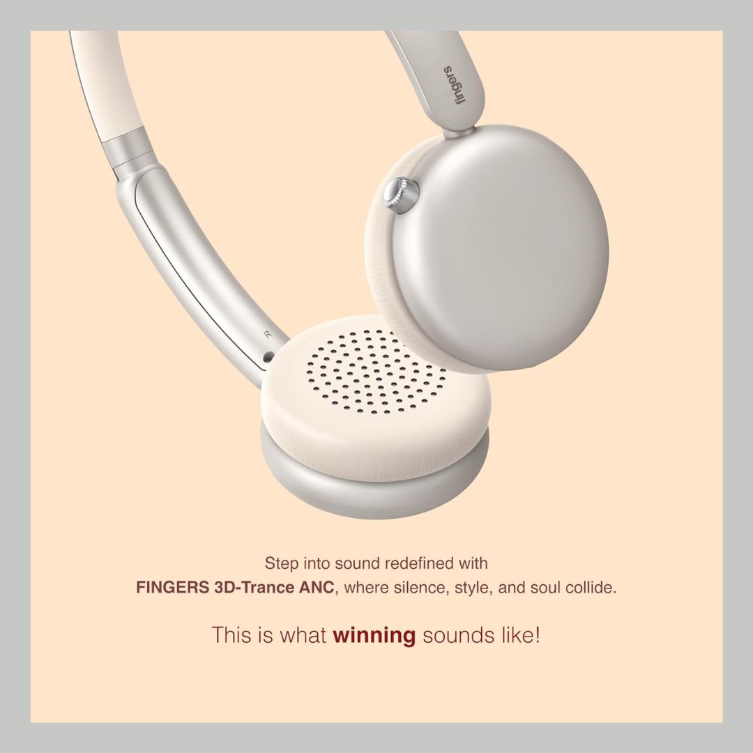 Experience next-level audio with the FINGERS 3D-Trance ANC Wireless Headphones in stunning Pearly Gold. Designed for music lovers, travelers, and work-from-home professionals, these headphones combine powerful 52 dB Active Noise Cancellation with 360° Spatial Sound to deliver an immersive and distraction-free listening experience.