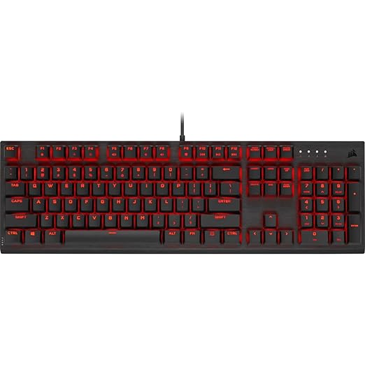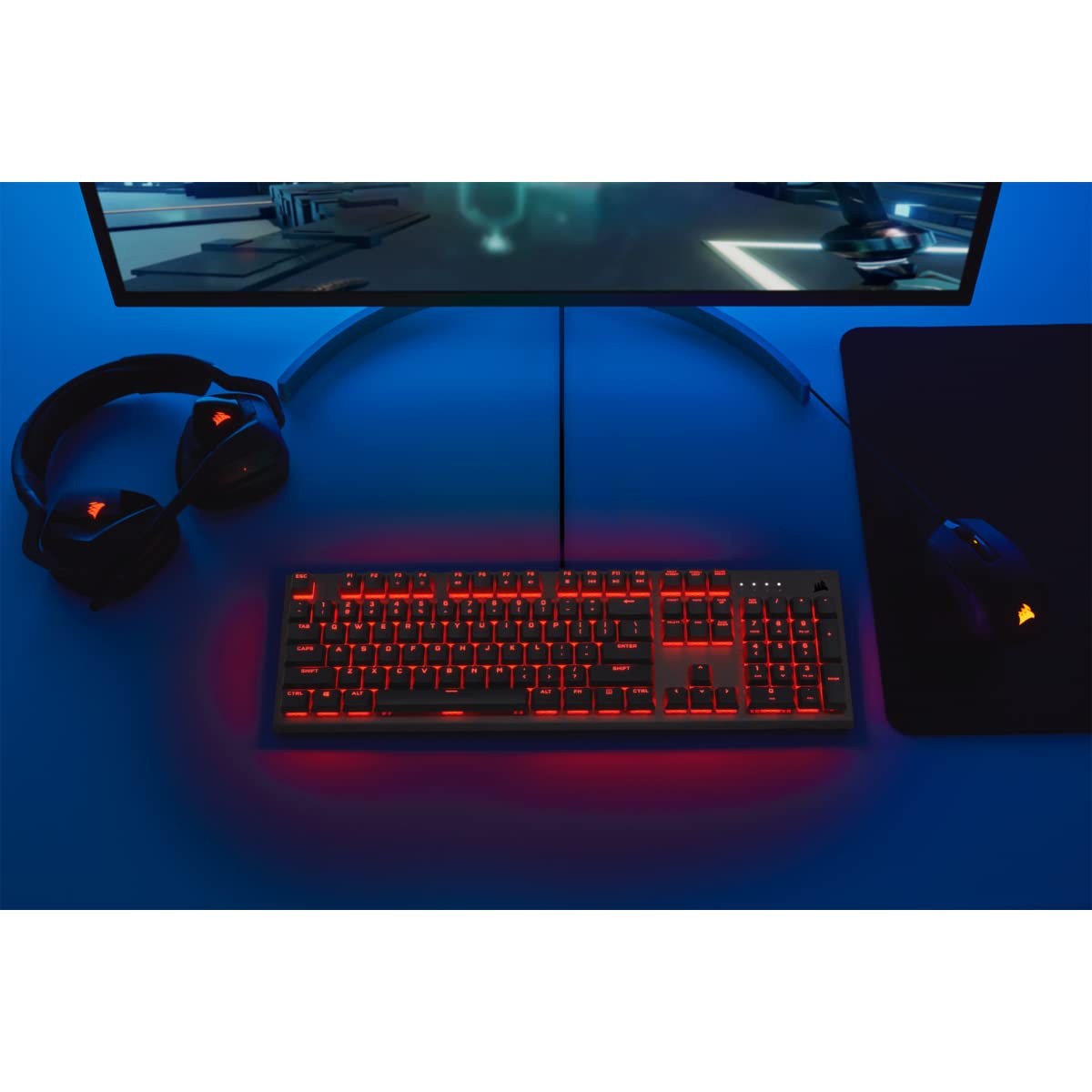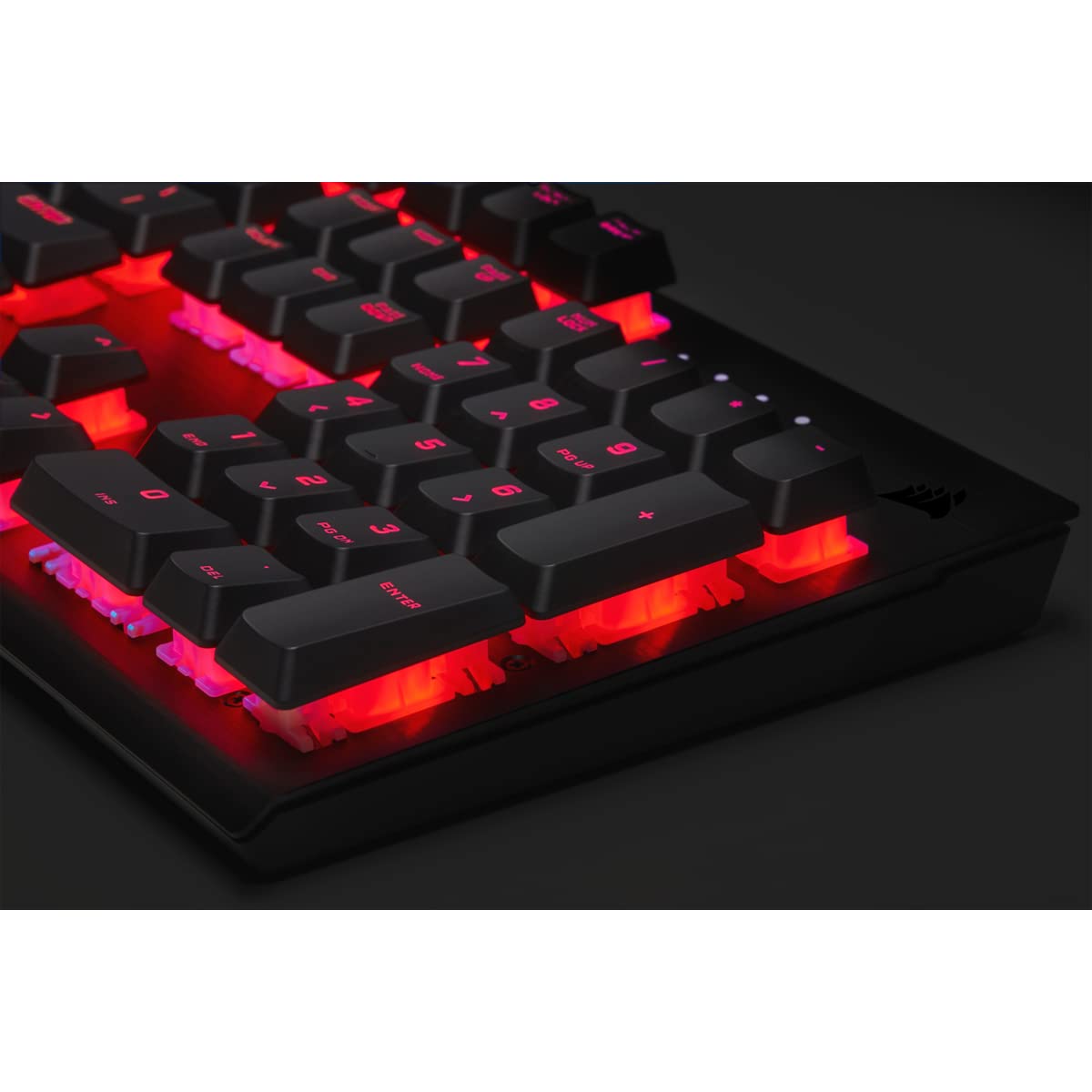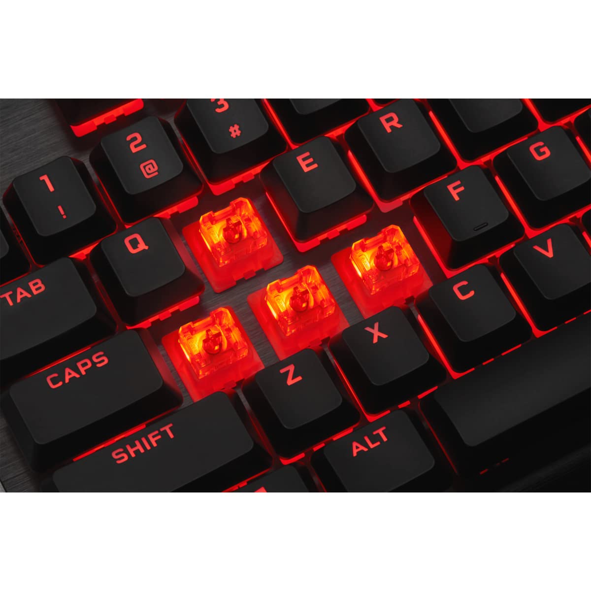 Illuminate your desktop with per-key red LED backlighting, amplified by underglow keycaps and a standard bottom row for a striking visual effect. With Corsair's powerful iCUE software, you can customize lighting, remap keys, and create macros for enhanced control. The keyboard supports full N-Key Rollover (NKRO) with 100% anti-ghosting, ensuring every keypress is registered, no matter how fast you play.