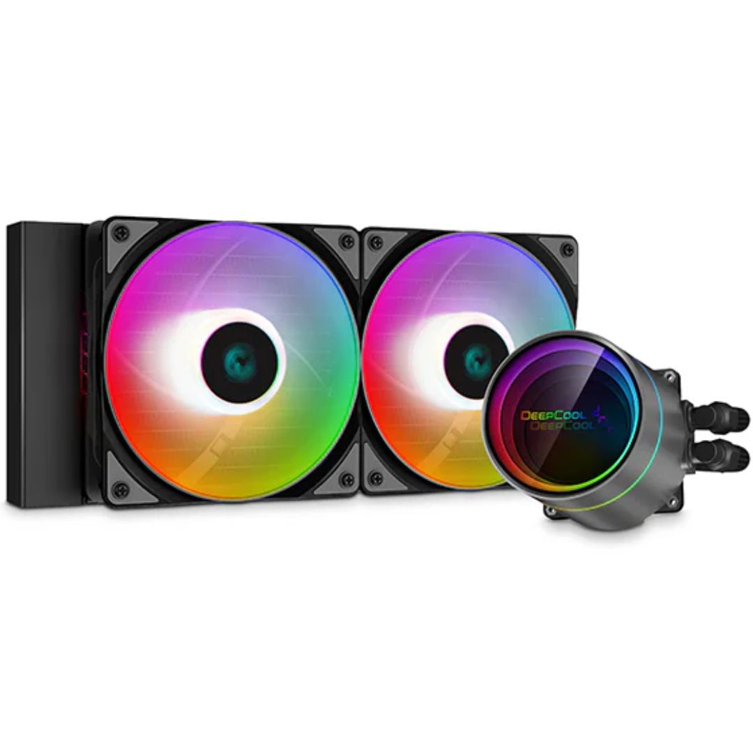 The DeepCool CASTLE 240EX A-RGB is a high-performance all-in-one liquid CPU cooler that combines strong cooling capabs cooler is dilities with premium aesthetics. Its signature infinity mirror pump design and A-RGB lighting elevate visual appeal, while the dual-chamber pump, high-flow coolant system and enhanced fin structure provide effective heat dissipation. The included Anti-Leak Technology ensures operational safety and reliability. Compatible with a wide range of Intel and AMD sockets, thiesigned for enthusiasts seeking both performance and style.