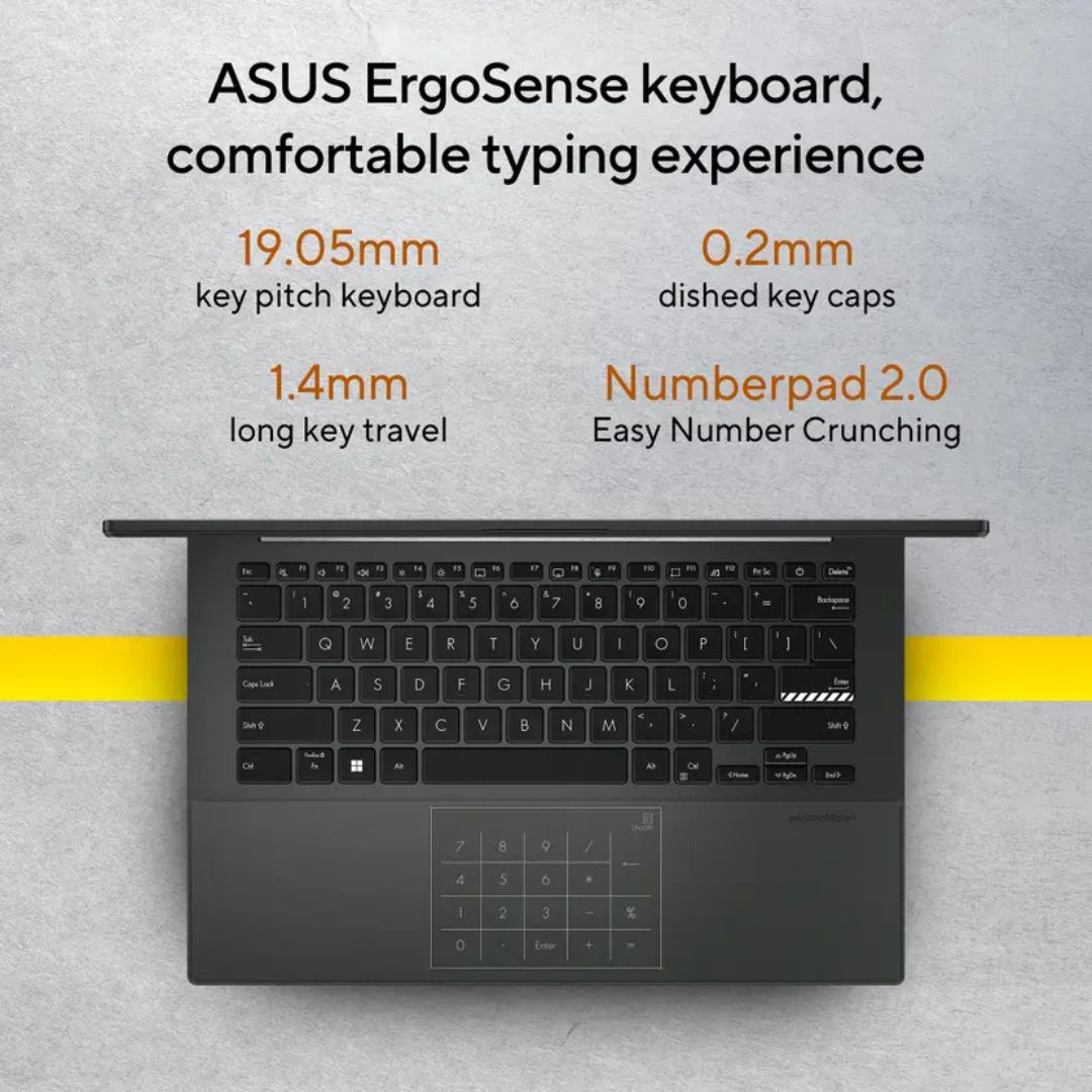 With its 14-inch Full HD display, lightweight 1.38kg design, and long battery life, it is built for portability and comfort. Windows 11, Office Home 2024, Wi-Fi 6, and premium ASUS build quality make this laptop a complete package for work, classes, and daily productivity needs.