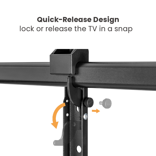 Heavy-duty arms provide strong support for larger and heavier TVs up to 120kg, it basically holds all types of TVs from 60” to 120”. TV installation and removal are made easy through a unique quick-release mechanism. Toolless tilting delivers optimal viewing angles. Integrated cable management creates a clean appearance.