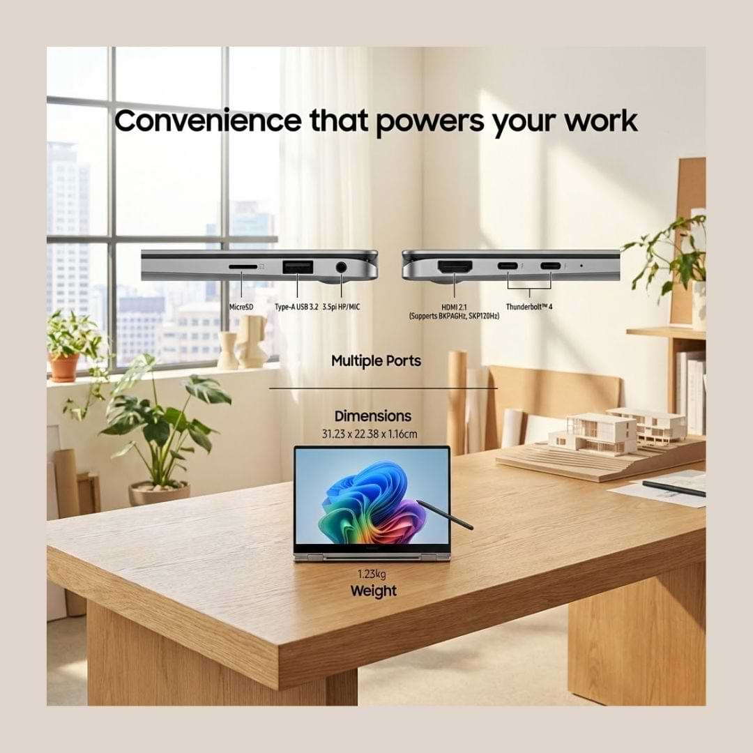 Its expansive 16-inch AMOLED touchscreen offers stunning clarity, deep blacks, and vibrant colors, making it ideal for content creation, presentations, and entertainment. Crafted with a durable metal body and weighing just 1.60 kg, it combines portability with screen size. Features like a backlit keyboard, fingerprint reader, Windows 11 Home, and MS Office make it a secure and complete productivity solution.