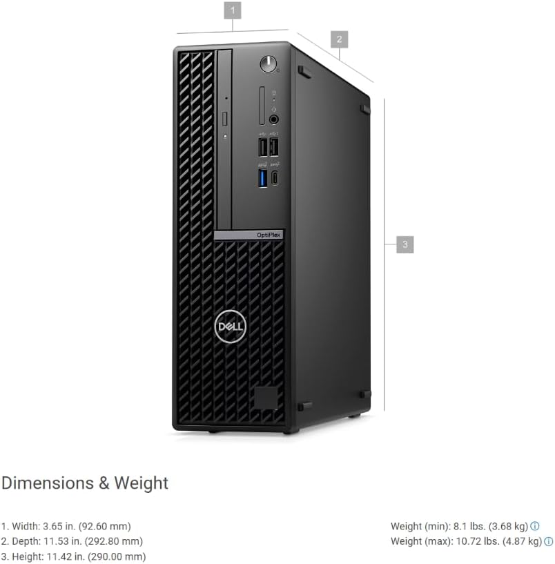 | Included Components | System Power Cord (US), OptiPlex Small Form Factor Plus, Quick Start Guide, OptiPlex SFF Plus, Dell Pro Wireless Keyboard and Mouse, Safety/Environment and Regulatory Guide (English/French Multi-language), USB Receiver |