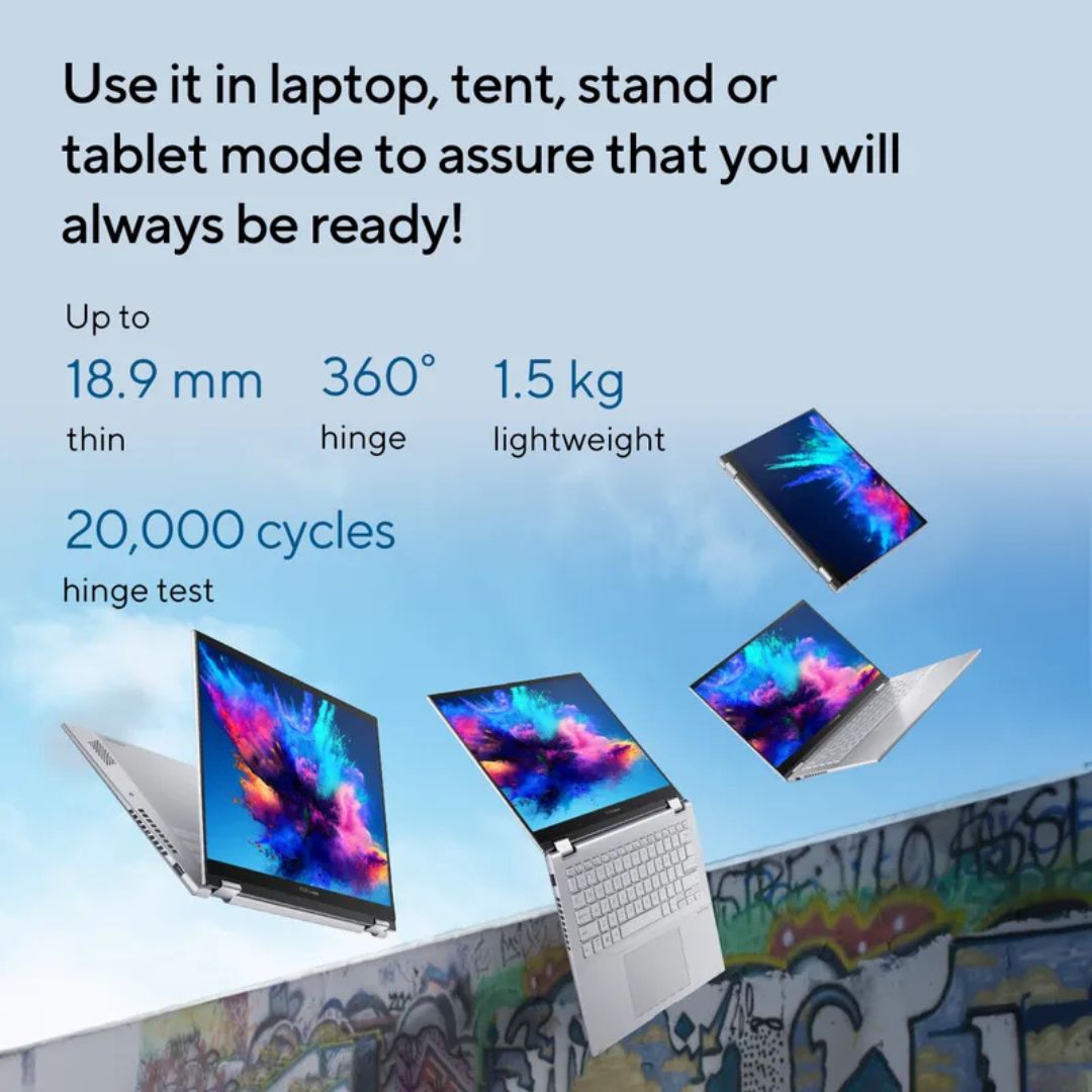 The ASUS Vivobook S14 Flip is a versatile 2-in-1 convertible laptop designed for productivity, creativity, and entertainment. Powered by the Intel Core i5-13420H processor with 16GB DDR4 RAM and 512GB SSD, it delivers fast and reliable performance for multitasking, streaming, and daily workloads.