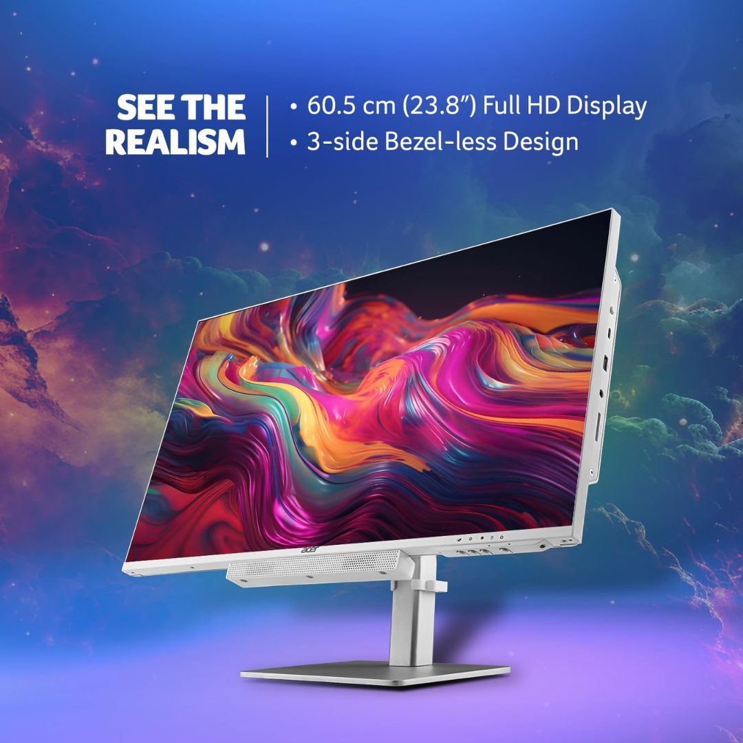Acer Aspire C27 All-in-One Desktop UD.311SI.00X offers a blend of performance, style, and functionality. Featuring a 27-inch Full HD IPS display, it delivers sharp and vibrant visuals while maintaining a sleek and slim design that saves space on your desk. Powered by the Intel Core i5-13420H processor with 16GB RAM and a 1TB SSD, this AIO ensures seamless multitasking, faster boot times, and plenty of storage.