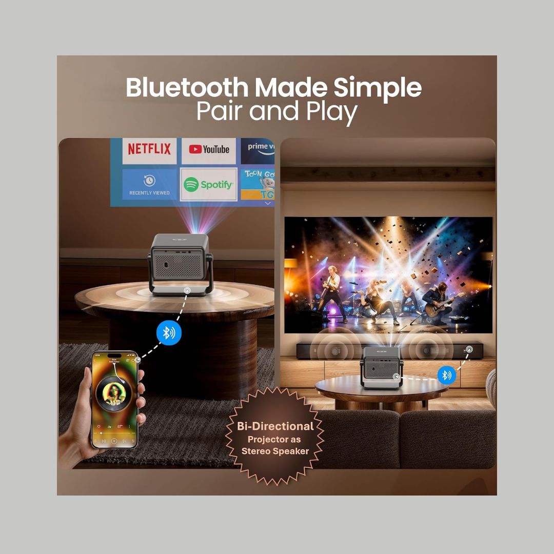 Designed for ease and convenience, this projector uses fully automatic focus and keystone correction, so you get perfectly aligned images without manual adjustments. Powered by Android 3, it gives you direct access to streaming apps like Netflix, Prime Video, and Live TV right on the big screen.