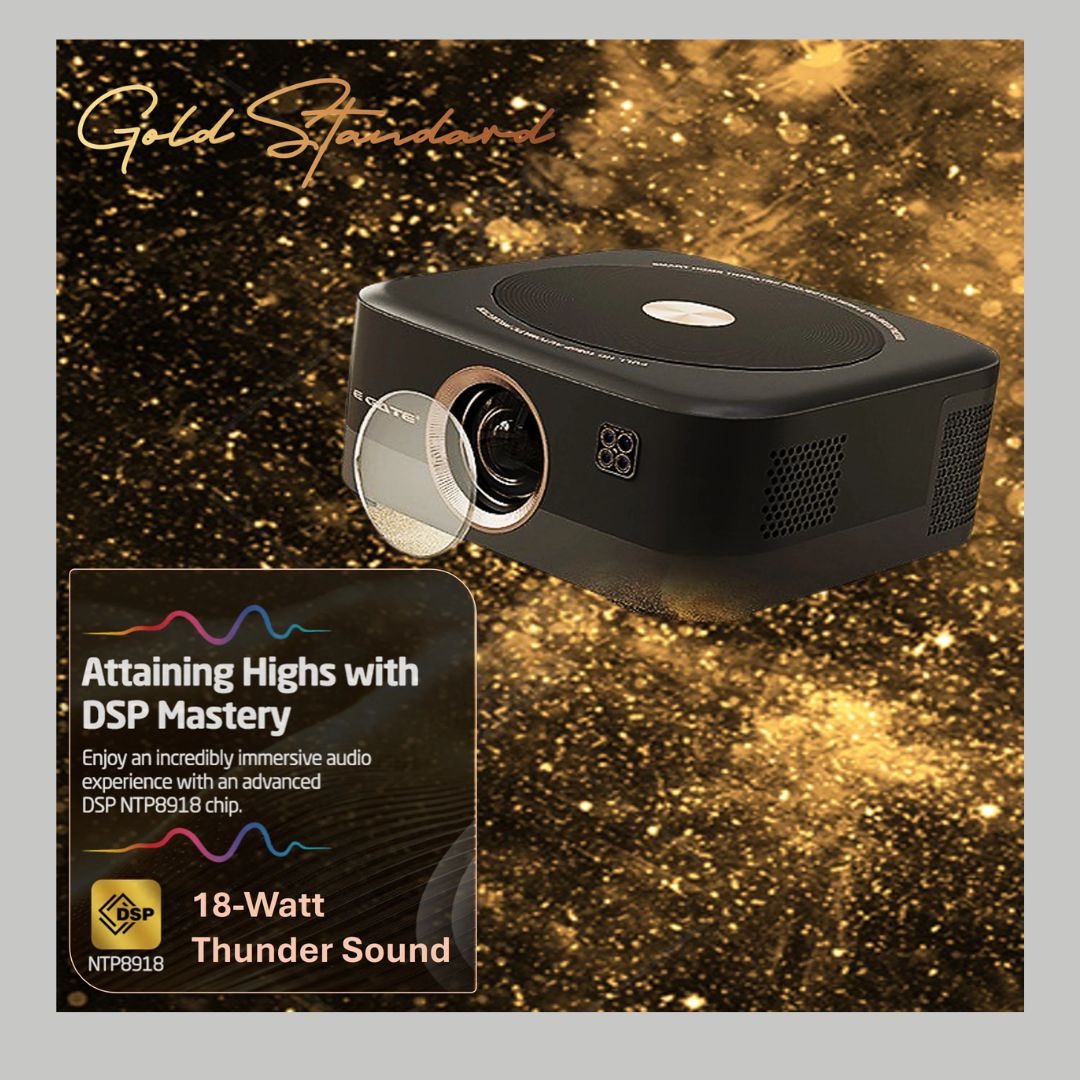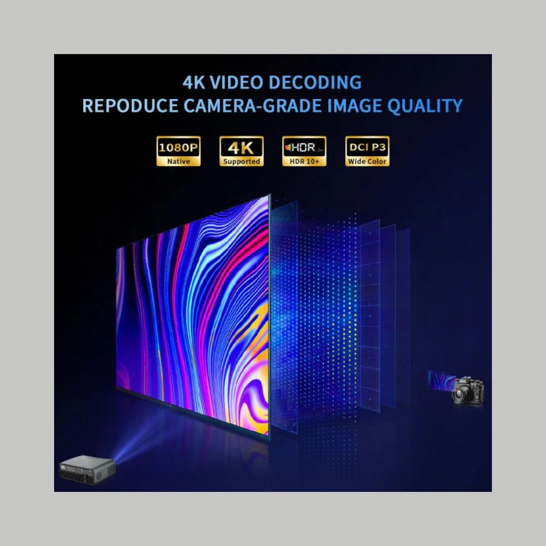 Powered by a Quad-Core processor with 32GB internal storage, and enhanced by 18W DSP stereo speakers, this projector is an ideal choice for home theaters, offices, classrooms, and entertainment spaces.