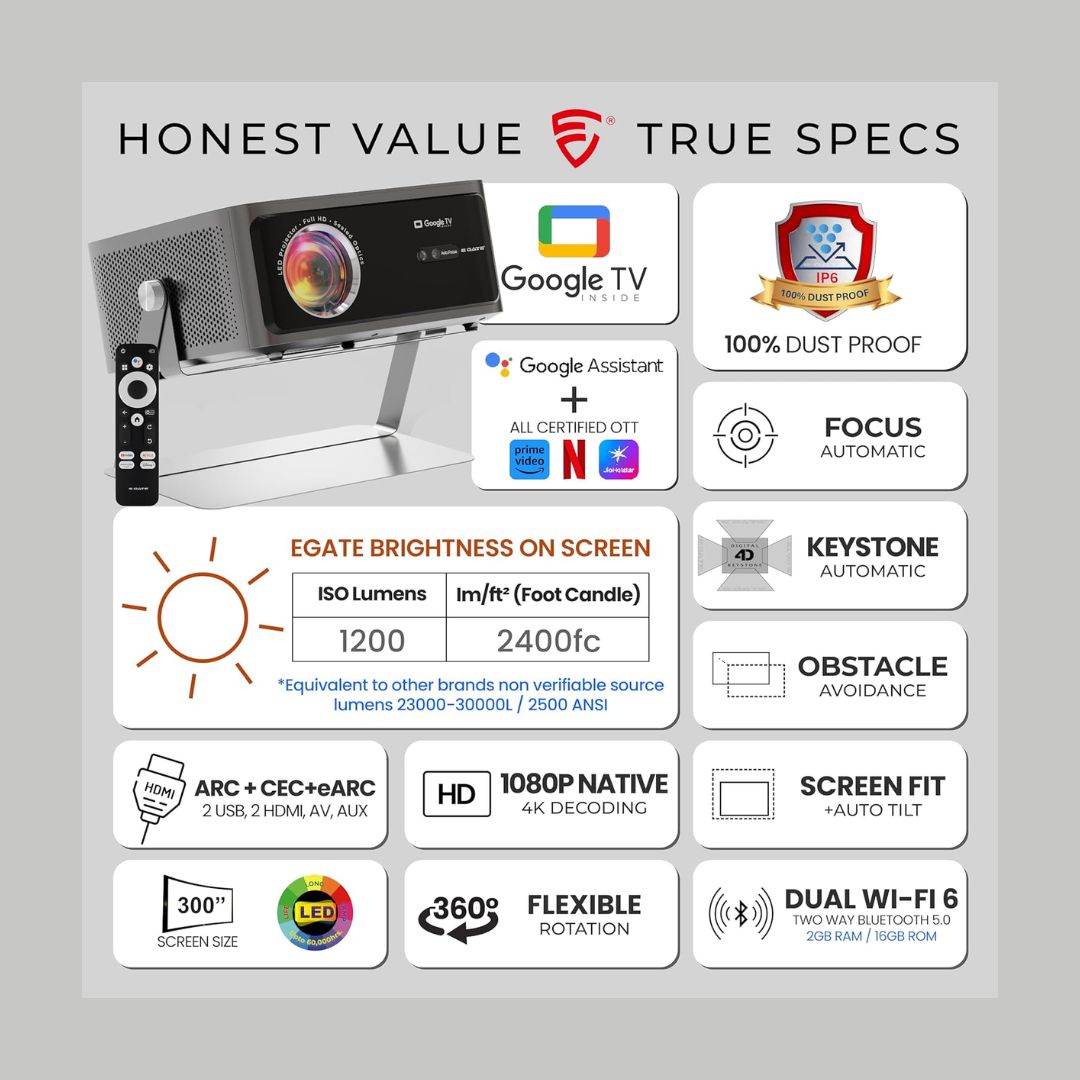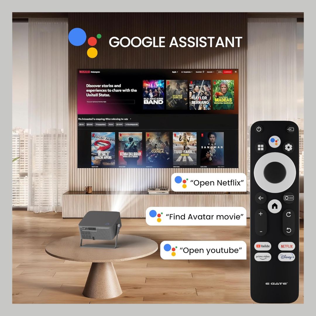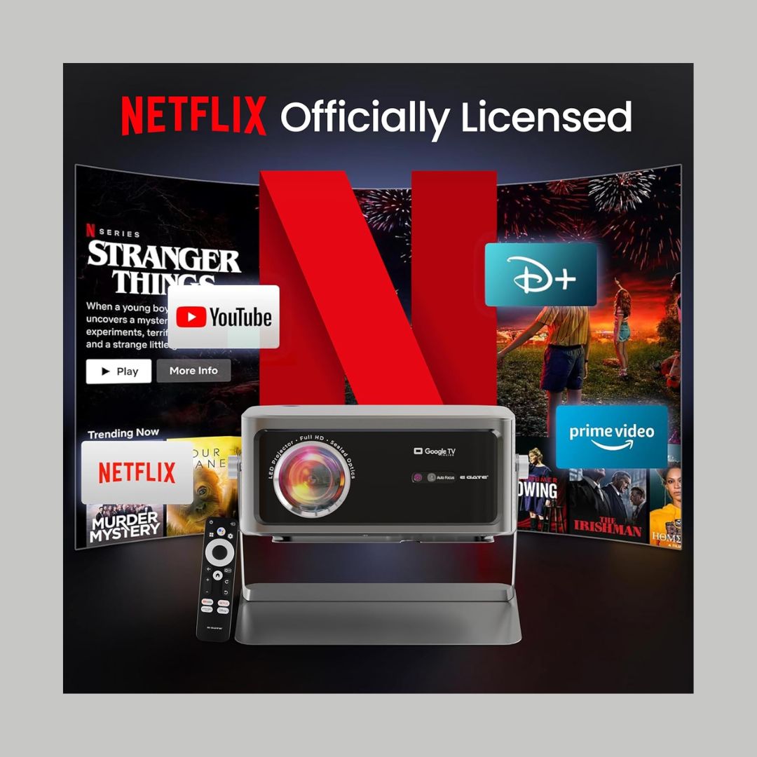 The E Gate Zen 12X Smart Projector is engineered for premium home-cinema performance with industry-certified smart features and exceptional brightness. Powered by Official Google TV with built-in Netflix, it lets you stream your favorite content directly—no external device required.