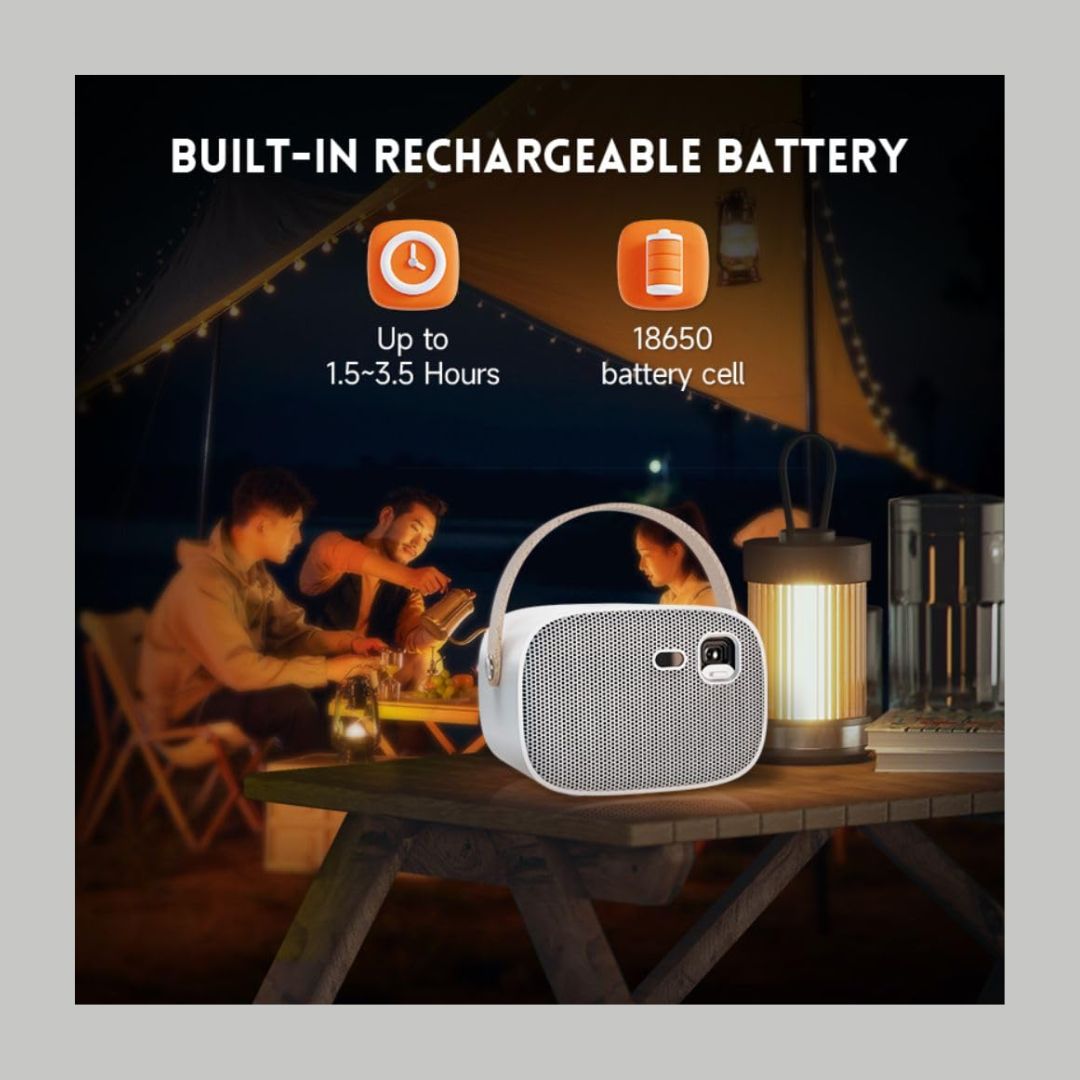 Equipped with a built-in rechargeable battery, this projector is perfect for outdoor movie nights, travel, and flexible home setups. The Android 9.0 operating system, paired with 2GB RAM and 32GB storage, allows direct app installation and smooth performance. Automatic focus and keystone correction make setup effortless wherever you place it.