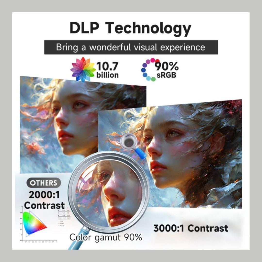 The E Gate Zen DLP 6X Smart Portable Projector is designed for users who want premium image quality with the freedom of portability. Featuring DLP display technology, it delivers sharper visuals and better color accuracy compared to standard LCD projectors.