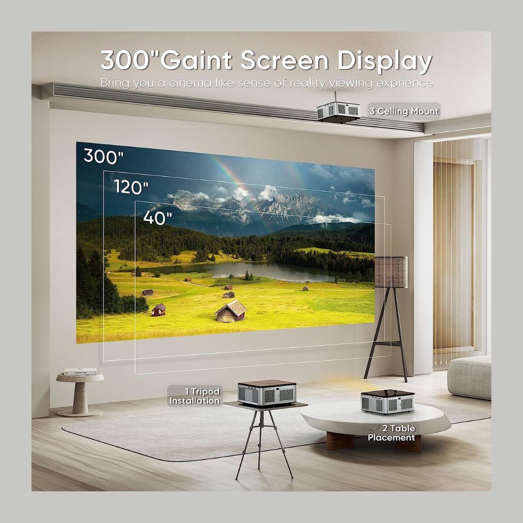 With a native Full HD 1080p resolution and 4K Ultra HD content support, the projector produces sharp, detailed visuals enhanced by its 12000 lumens brightness, making it suitable for room environments with ambient light. The fully automatic focus and keystone correction allow quick and hassle-free installation.