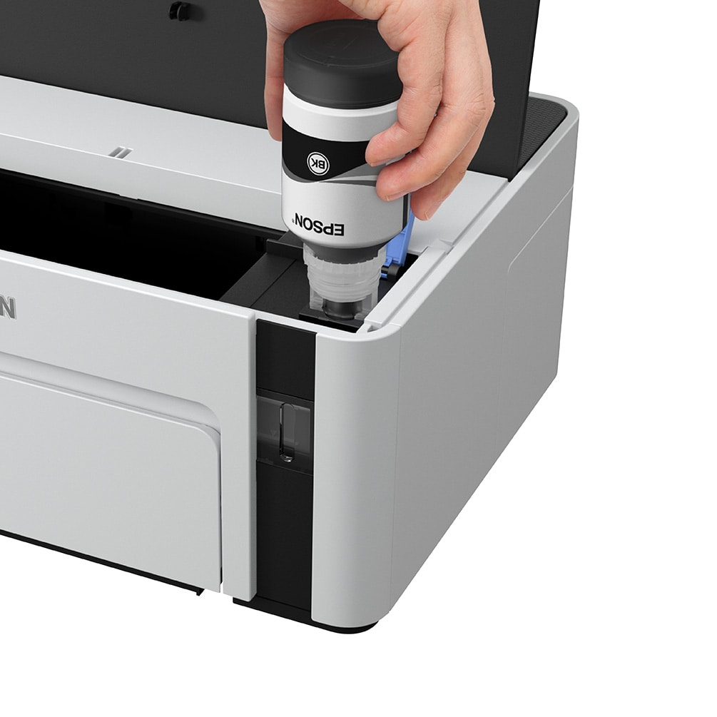 Efficiency meets economy with the EcoTank monochrome M1100 printer. Look forward to lower business costs with bottles that provide an ultra-high page yield of up to 6,000 pages2 at low cost per print4. Simplify processes with the integrated ink tank that enables spill - and error-free ink refilling, and enjoy laser-quality text that is smudge-proof and water-resistant with the pigment ink.