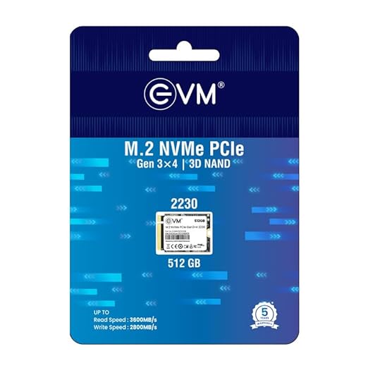 Yes, the EVM 512GB M.2 NVMe SSD comes with a 5-year warranty provided by EVM for added reliability and peace of mind.