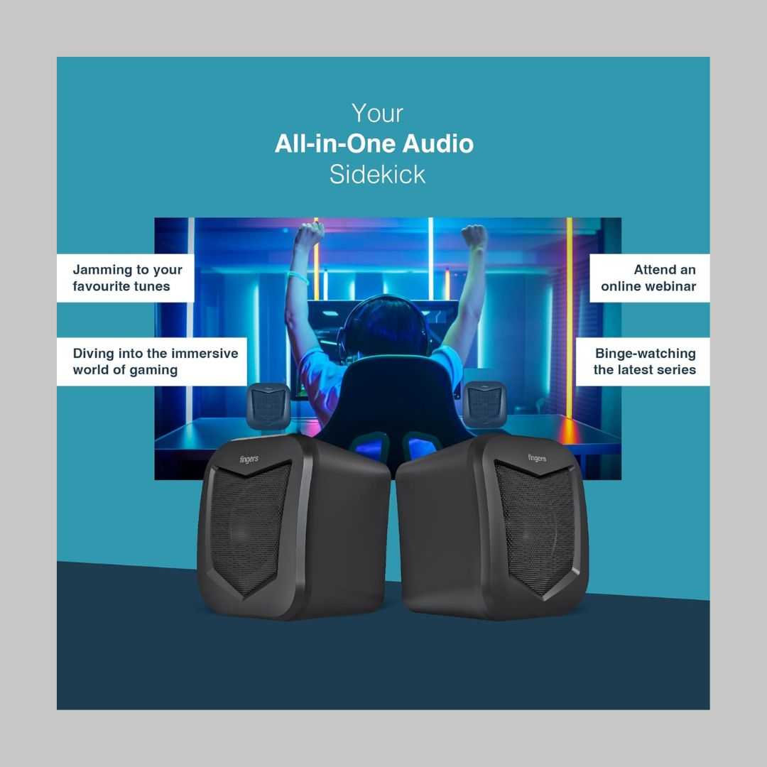 Elevate your desktop audio experience with the FINGERS DeskSound 2.0 USB Powered Speakers. Compact, stylish, and easy to use, these speakers deliver clear stereo sound perfect for music, movies, gaming, or webinars. Powered directly via USB, they eliminate the need for an external adapter and are ready to use with any PC or laptop. The inline volume controller provides convenient, immediate control, while the simple plug-and-play setup makes it hassle-free. Finished in Midnight Black, these speakers complement any workspace while offering reliable multimedia performance.