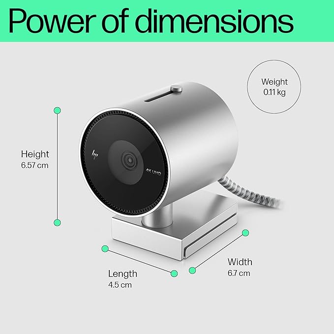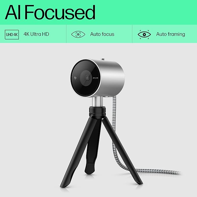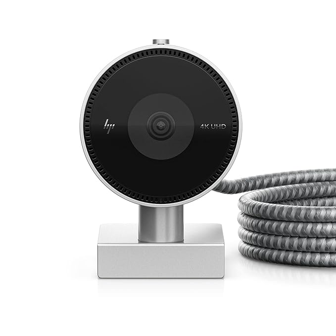 HP 950 4K UHD Webcam is a high-performance camera designed for professional video calls, content creation, and streaming. It delivers ultra-clear visuals with 4K UHD resolution and supports smooth video at 60 FPS in 720p HD. Equipped with auto focus and auto framing, it keeps you sharp and centered during calls. The built-in privacy shutter ensures your security when not in use, and the 360° swivel base offers flexible positioning for the perfect angle. With a sleek silver and black design, the HP 950 blends style and functionality. Ideal for both work and home setups, it is compatible with major video conferencing platforms and offers plug-and-play ease for instant connectivity via USB.