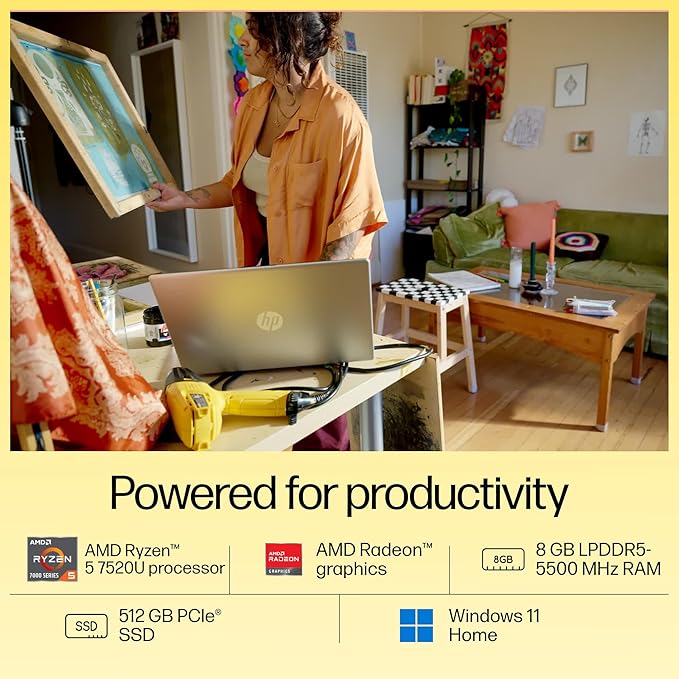 The HP Laptop 15s-fc0155AU is powered by an AMD Ryzen™ 5 7520U processor, which provides a balance of performance and energy efficiency for everyday tasks.