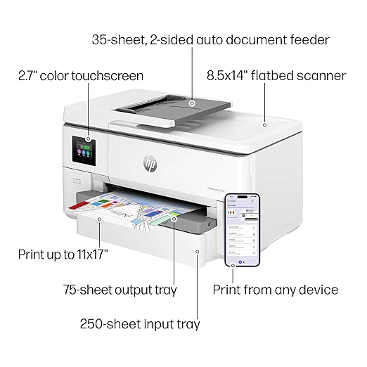 Upgrade your office productivity with the HP OfficeJet Pro 9720e, a powerful wide format, wireless all-in-one color inkjet printer designed for home offices and businesses that need professional-quality results with smart, cost-efficient performance.