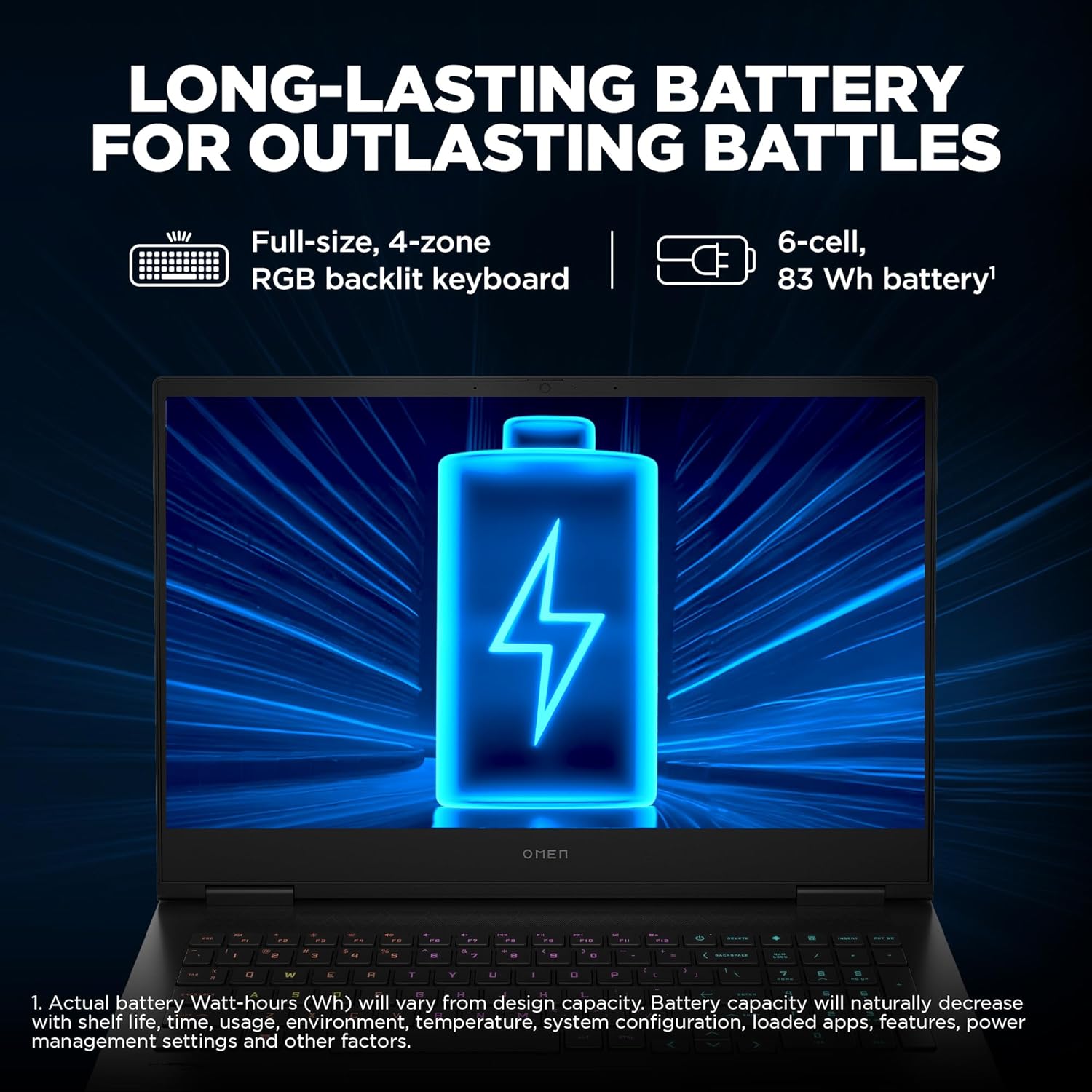 The HP OMEN Gaming Laptop (wf1150TX) delivers a premium gaming experience with cutting-edge hardware and refined design. Powered by the 14th Gen Intel Core i7-14650HX processor and an 8GB NVIDIA GeForce RTX 4060 GPU, it handles AAA games, streaming, and multitasking effortlessly. Its 16.1-inch Full HD IPS display with a 144Hz refresh rate ensures ultra-smooth visuals, while 16GB DDR5 RAM and a massive 1TB SSD provide fast performance and abundant storage.
