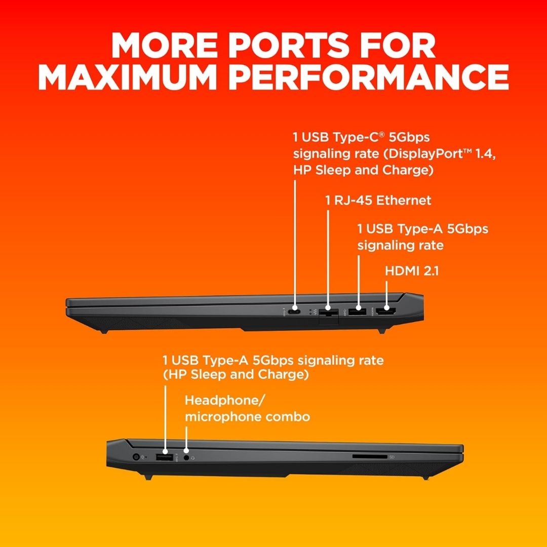 The Victus line is known for its enhanced cooling, and this model ensures optimal temperature control even under heavy workloads. With Wi-Fi 6, Bluetooth 5.3, HDMI 2.1, USB-C, and RJ-45 Ethernet, connectivity is never an issue.