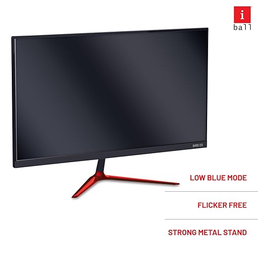 iBall Bird i22 LED Monitor: This 21.45" widescreen monitor features a frameless ultra-slim design with a full HD resolution of 1920x1080 pixels and a 75Hz refresh rate, providing smooth visuals. With an A+ grade panel, it offers a brightness range of 200-250 cd/m² and a dynamic contrast ratio of 500,000:1. The monitor is wall-mountable (4-hole design) and includes a metallic stand that tilts (+15° forward, -5° backward). Equipped with HDMI and VGA inputs, it is suitable for both home and office use, including CCTV compatibility. Power consumption is efficient at 12V/2.5A DC, and it comes bundled with an HDMI cable and DC adapter for instant setup. The monitor dimensions are 14.2 x 49.4 x 37.1 cm, weighs 2.9 kg, and is supported by a 3-year warranty.