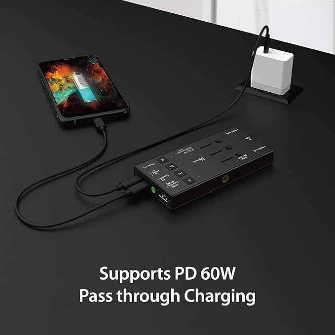 Supporting 1080p @ 60Hz resolution and real-time audio, it’s perfect for game streaming, online classes, webinars, or content creation. The 60W Power Delivery pass-through keeps your host device charged while streaming, and the plug-and-play design ensures effortless setup—no drivers required.