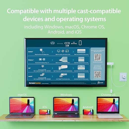 The JVAW76 ScreenCast 4K Wireless Display Adapter transforms any ordinary HDMI™ display into a smart wireless screen — no cables, no network setup, no apps. Whether you’re sharing your latest presentation at the office, watching a movie at home, or mirroring your phone screen on a hotel TV during travel, this compact device has you covered.