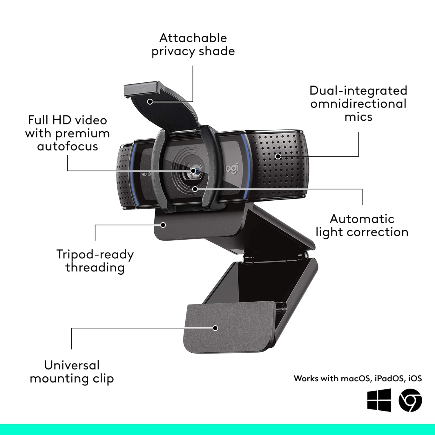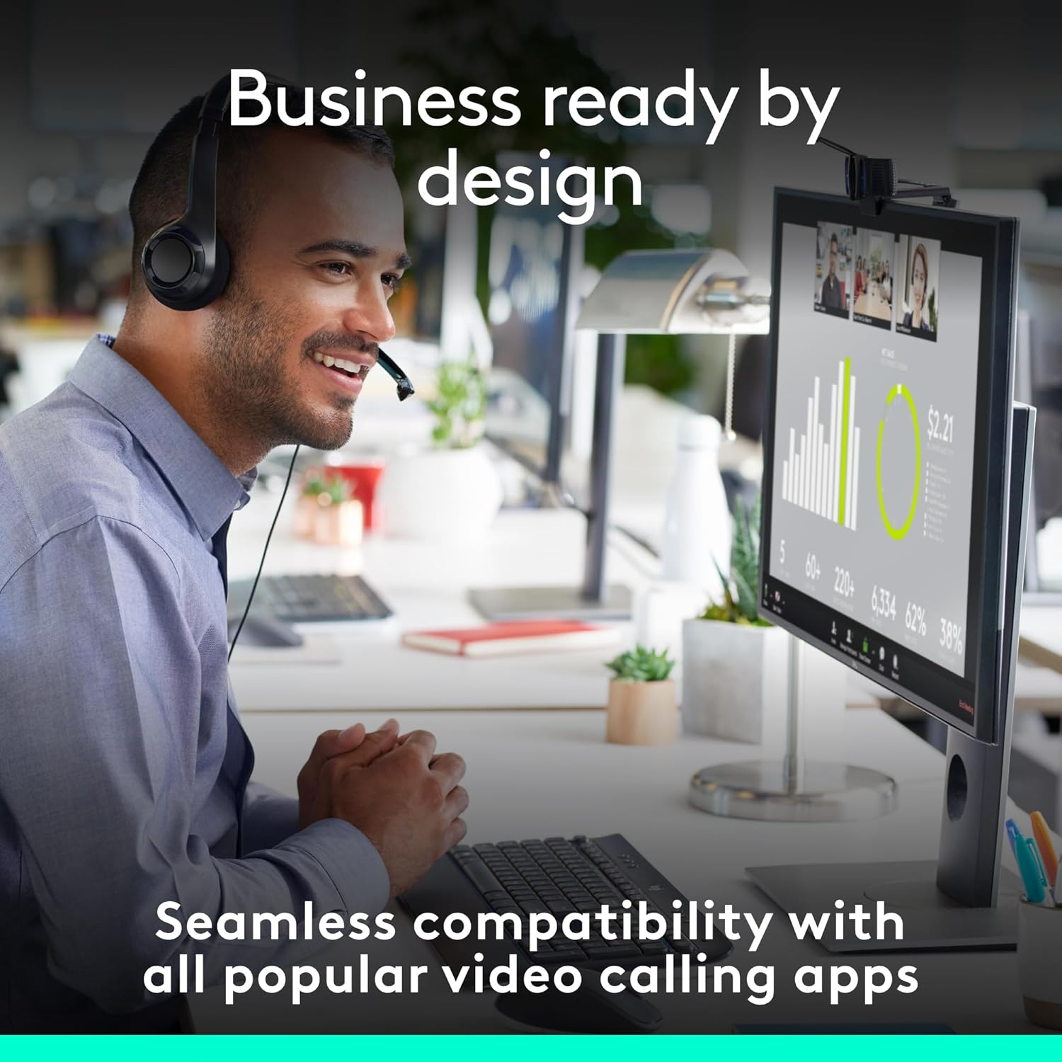 C920e is a budget-friendly, work-from-anywhere webcam that delivers HD video meetings that look better than most laptop built-ins with mics at a price point that’s ideal for mass deployment. The 78° diagonal field of view displays individual users in a well-balanced visual frame while two integrated omnidirectional microphones optimized to capture your audio from up to one meter away, can be enabled via the Logi Tune app when needed. Built-in HD autofocus ensures you’re seen clearly when on camera, while a detachable privacy screen flips up and down to cover or expose the lens. C920e is designed with a sturdy, adjustable clip that makes it easy to mount on any laptop or external monitor. Plus it has a ¼” thread to enable mounting to a tripod. C920e is certified for Microsoft Teams®, Zoom®, TAA compliant and compatible with other popular applications including BlueJeans, Cisco Webex®, Fuze, Google Meet™, GoToMeeting™, Lifesize Cloud, Pexip, RingCentral Video and Vidyo to ensure compatibility and seamless integration in the workplace.