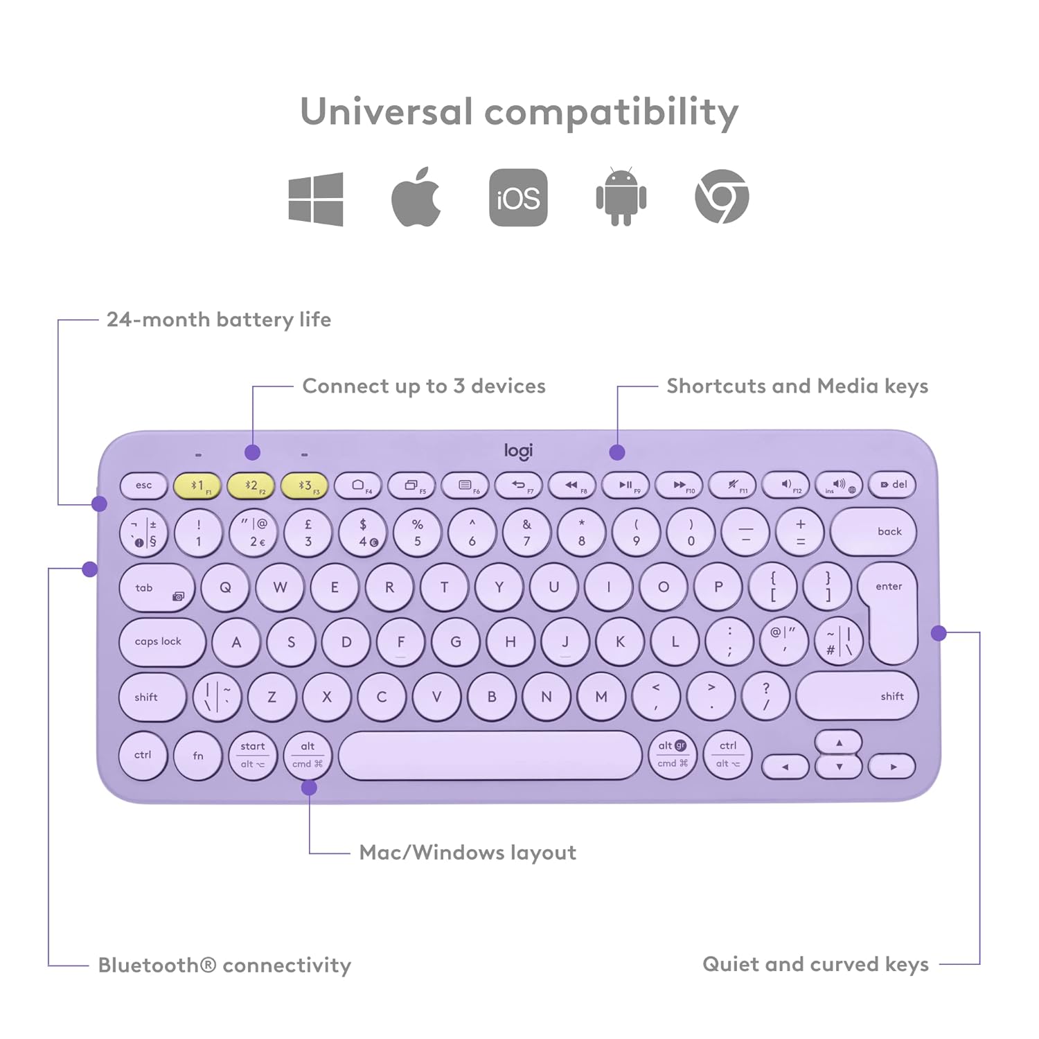 INTUITIVE LAPTOP-LIKE TYPINGSculpted round keys match the shape of your fingertips for a comfy, familiar typing experience. |