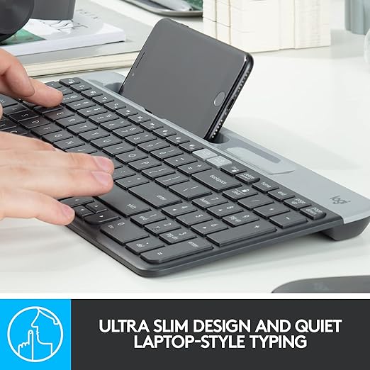 The Logitech K580 Slim Multi-Device Wireless Keyboard is designed for effortless multitasking across all your devices. With its ultra-compact and modern design, it fits perfectly on your desk while saving space. Featuring dual wireless connectivity via Bluetooth or the included USB receiver, it allows you to switch seamlessly between your computer, tablet, or smartphone using the Easy-Switch keys. The whisper-quiet, low-profile keys ensure a comfortable typing experience, while the integrated phone cradle keeps your mobile device within reach for quick viewing. Powered by a 24-month battery life, the K580 delivers long-lasting performance without the hassle of frequent charging. Compatible with Windows, macOS, Chrome OS, iOS, and Android, it’s the perfect keyboard for work, study, and entertainment.