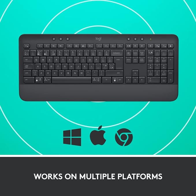 Logitech Signature K650 Wireless KeyboardExperience superior typing comfort and efficiency with the Logitech Signature K650 Wireless Keyboard. Designed for all-day productivity, this keyboard features a soft-touch palm rest and deep-cushioned keys, ensuring a satisfying and familiar typing experience. Its full-size layout is enhanced with convenient shortcut keys for mic mute/unmute, screenshots, and quick web navigation, streamlining your daily tasks.Stay connected the way you prefer—via Bluetooth Low Energy (BLE) or the included Logi Bolt USB receiver—offering flexibility and reliability. The K650 is compatible with multiple platforms, including Windows, macOS, Chrome OS, Linux, iPadOS, iOS, and Android, making it perfect for versatile use.With a battery life of up to 36 months, this keyboard minimizes interruptions and is also spill-resistant, ensuring hassle-free maintenance. Pair it with the Logitech M650 mouse for enhanced productivity, and customize settings via the Logi Options+ Software.Crafted with sustainability in mind, the K650 includes certified post-consumer recycled plastic and is certified carbon neutral, making it an eco-conscious choice.Elevate your typing experience with the Logitech Signature K650, where comfort, performance, and sustainability meet.