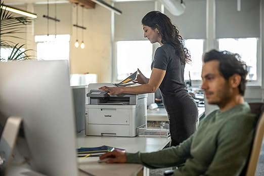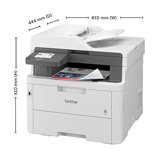 Brother MFC-L3760CDW is a powerful multifunction colour laser LED printer designed to meet the needs of small to medium-sized businesses. This versatile all-in-one device offers printing, scanning, copying, and faxing capabilities, making it an ideal solution for comprehensive office tasks. With Gigabit Ethernet and wireless connectivity, it ensures seamless integration into your network for easy access from multiple devices. The printer features automatic duplex printing, allowing for efficient double-sided document production, and delivers impressive print speeds of up to 25 pages per minute (PPM).
