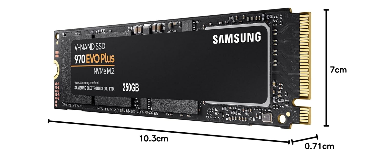 A: The Samsung 970 EVO Plus 250GB offers up to 3,500 MB/s read and 2,300 MB/s write speeds, delivering fast performance for gaming, booting, and file transfers.