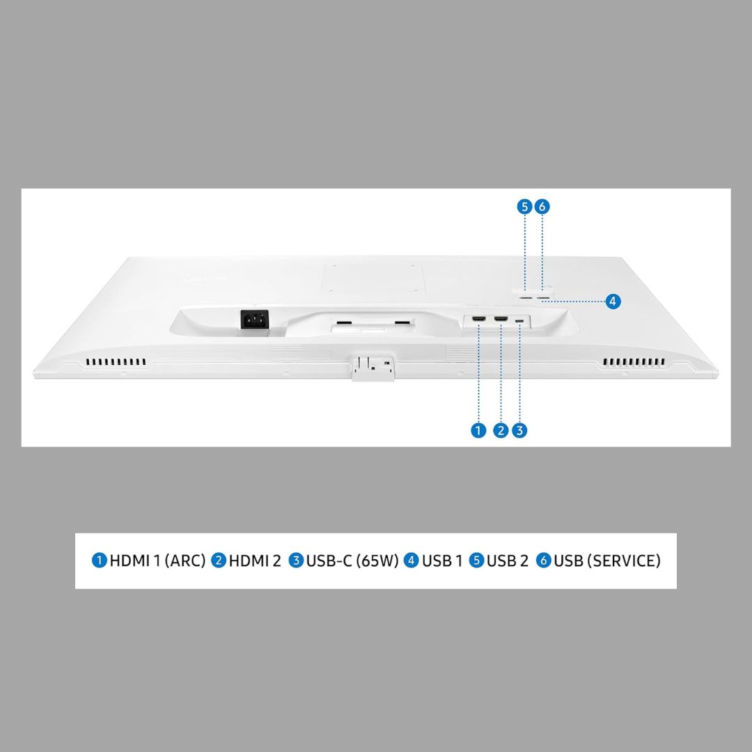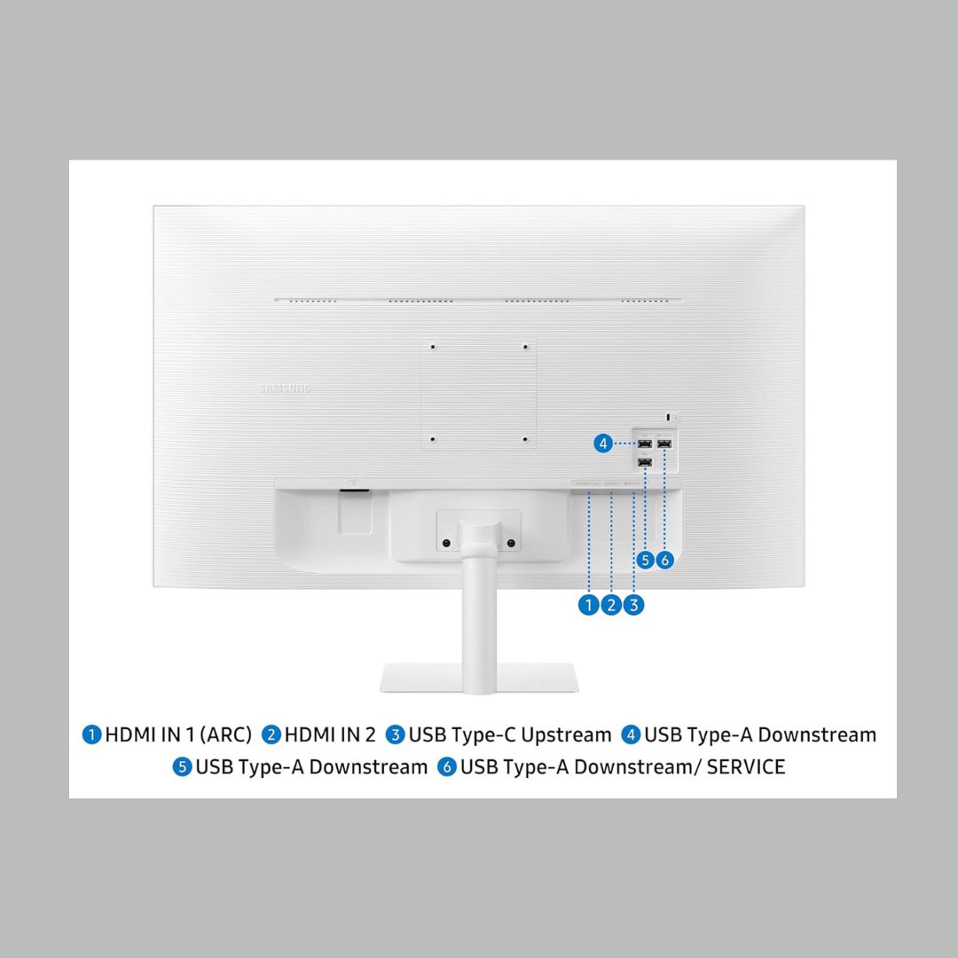 Finished in a clean white design, the Samsung M7 Smart Monitor is ideal for modern home offices and smart living spaces.
