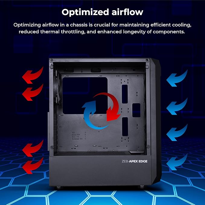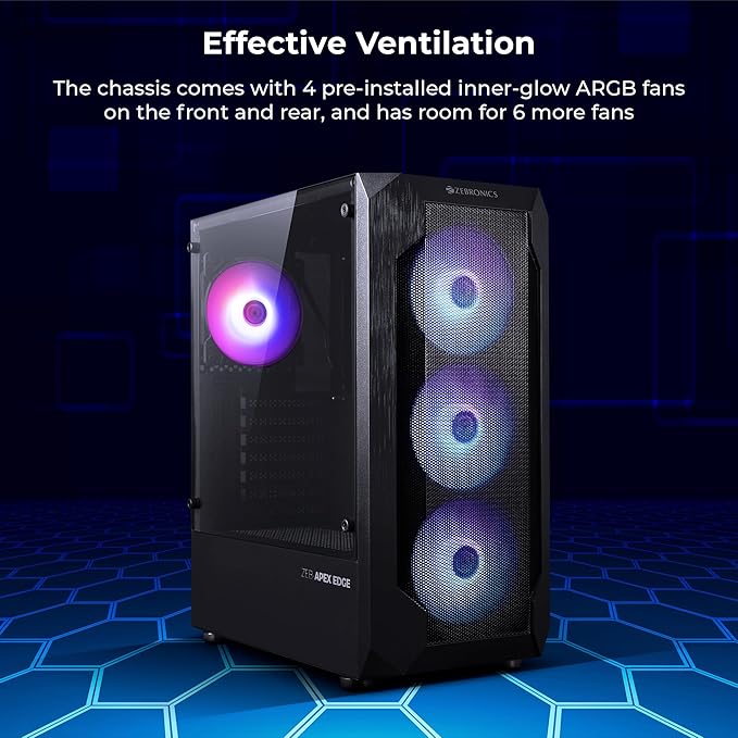The Zebronics APEX Edge Premium Mesh Full-Tower Gaming Cabinet is designed for gamers who demand performance, airflow, and style in one powerful package. Built with a high-airflow mesh front panel, this case ensures optimal cooling even during long gaming sessions. It comes pre-installed with 4 Inner Glow ARGB fans, offering vibrant lighting effects and excellent heat dissipation right out of the box.
