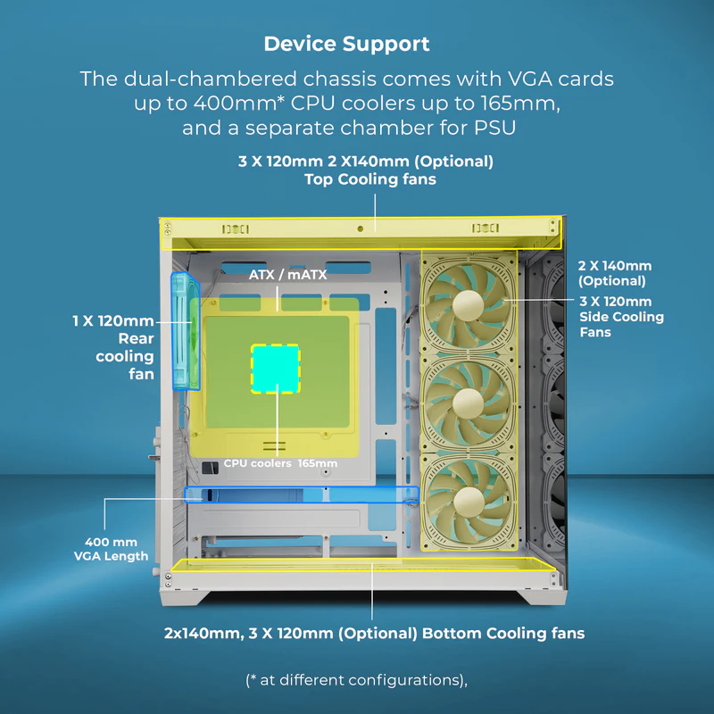 | Cooling Support | Supports additional front/rear fan installation (optional) |