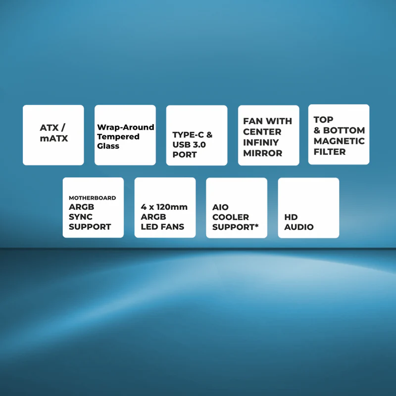| PSU Support | Standard ATX Power Supply (bottom mounted) |