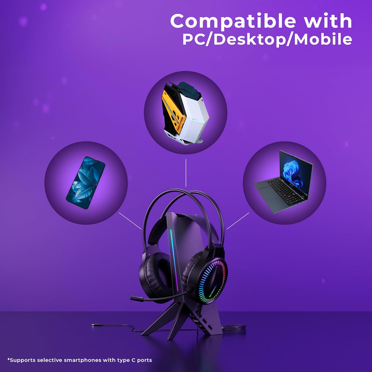 Enhance your gaming experience by adjusting audio preferences through the integrated volume controller while elevating immersion with vibrant multicolor lights, adding a visually stunning dimension to your gaming environment