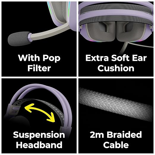 Designed with extra soft ear cushions and a self-adjusting suspension headband, it ensures hours of comfortable use. The durable braided cable provides long-lasting reliability, while the built-in microphone ensures crystal-clear in-game communication.