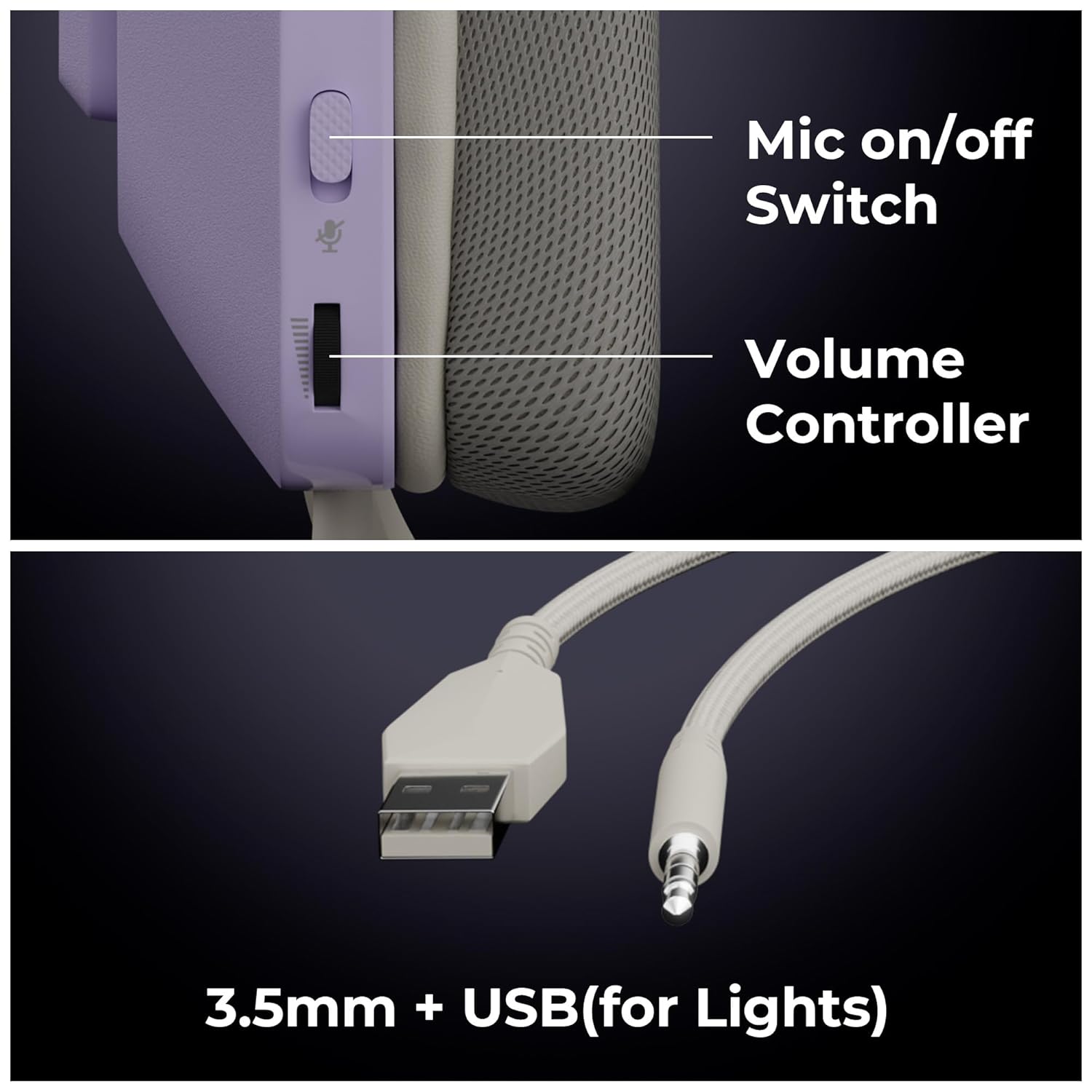 Easily connect the headphones via 3.5mm and USB for audio and lighting functions.