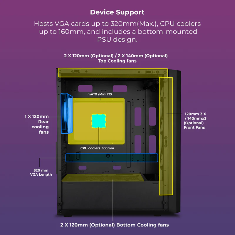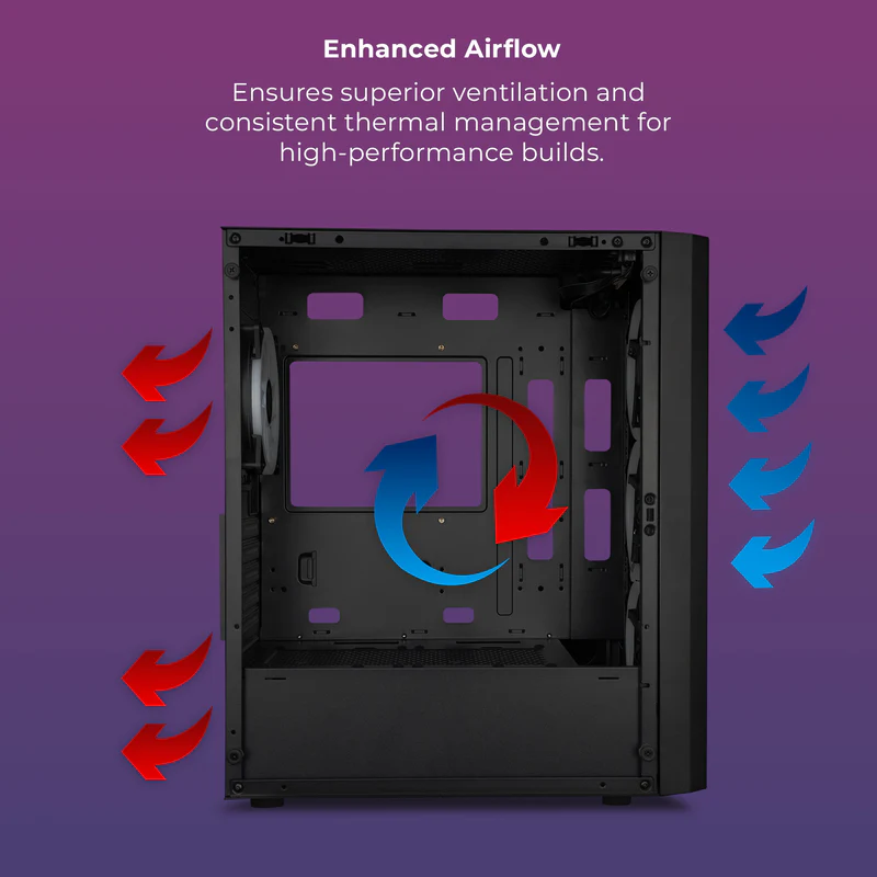 Compatible with ATX / Micro-ATX / Mini-ITX motherboards, it allows versatile build options for beginners and enthusiasts alike. Designed with airflow optimization, durability, and aesthetics in mind, this cabinet delivers the perfect blend of performance and style.