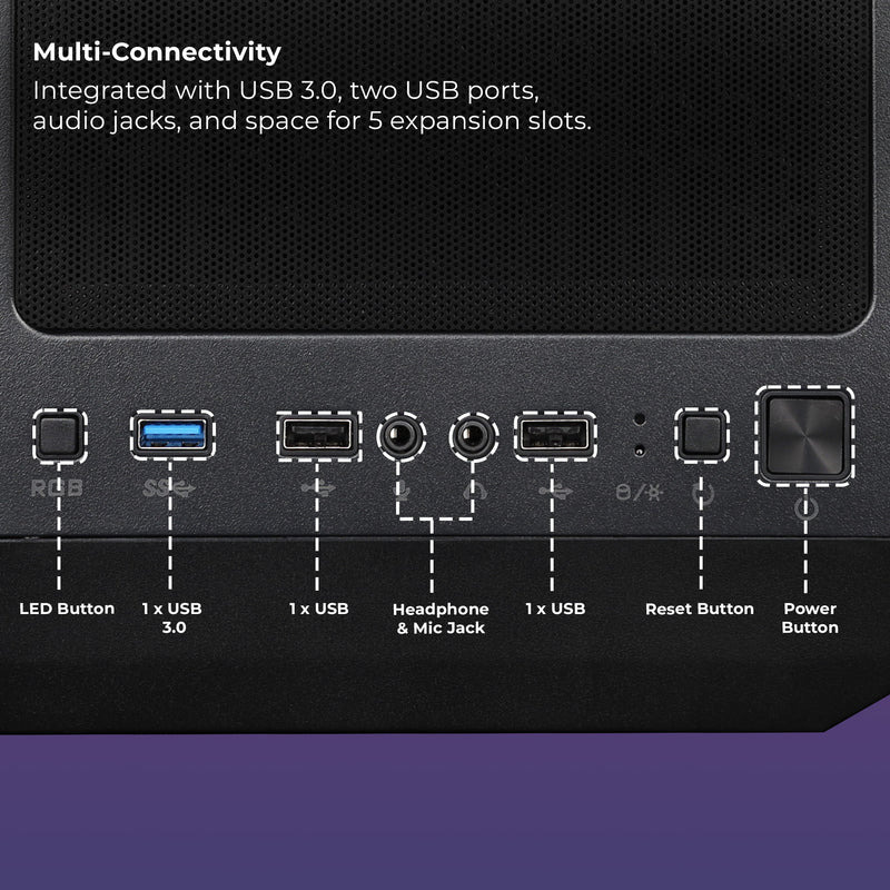 Showcase your build like a pro with the tempered glass side panel, offering a clear view of your RGB components and cable-managed interior. The ZEB-Voxa supports ARGB lighting, letting you customize the look and feel of your setup with vibrant lighting effects that sync with your build.